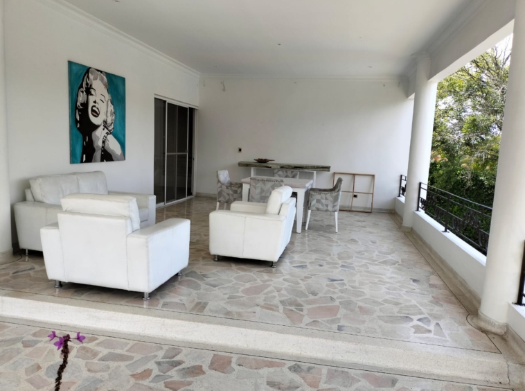La vivienda 4 habitaciones grandes. La habitación principal con vestier doble y salida al balcón, 2 habitaciones con baño, estudio, biblioteca, sala de tv, sala principal, sala auxiliar comedor principal, comedor auxiliar, sala campestre comedor campestre estadero, habitación del servicio con baño y closet, habitación para escolta, depósito, cocina integral con isla muy completa con excelentes alacenas, jacuzzy al aire libre, jardines amplios, bar para bbq, con cocina, baño. Hermosos jardines que rodean toda la casa, zona de oficios, terraza. Ventanas panorámicas, baño social, clóset de linos, parqueadero para 10 carros.