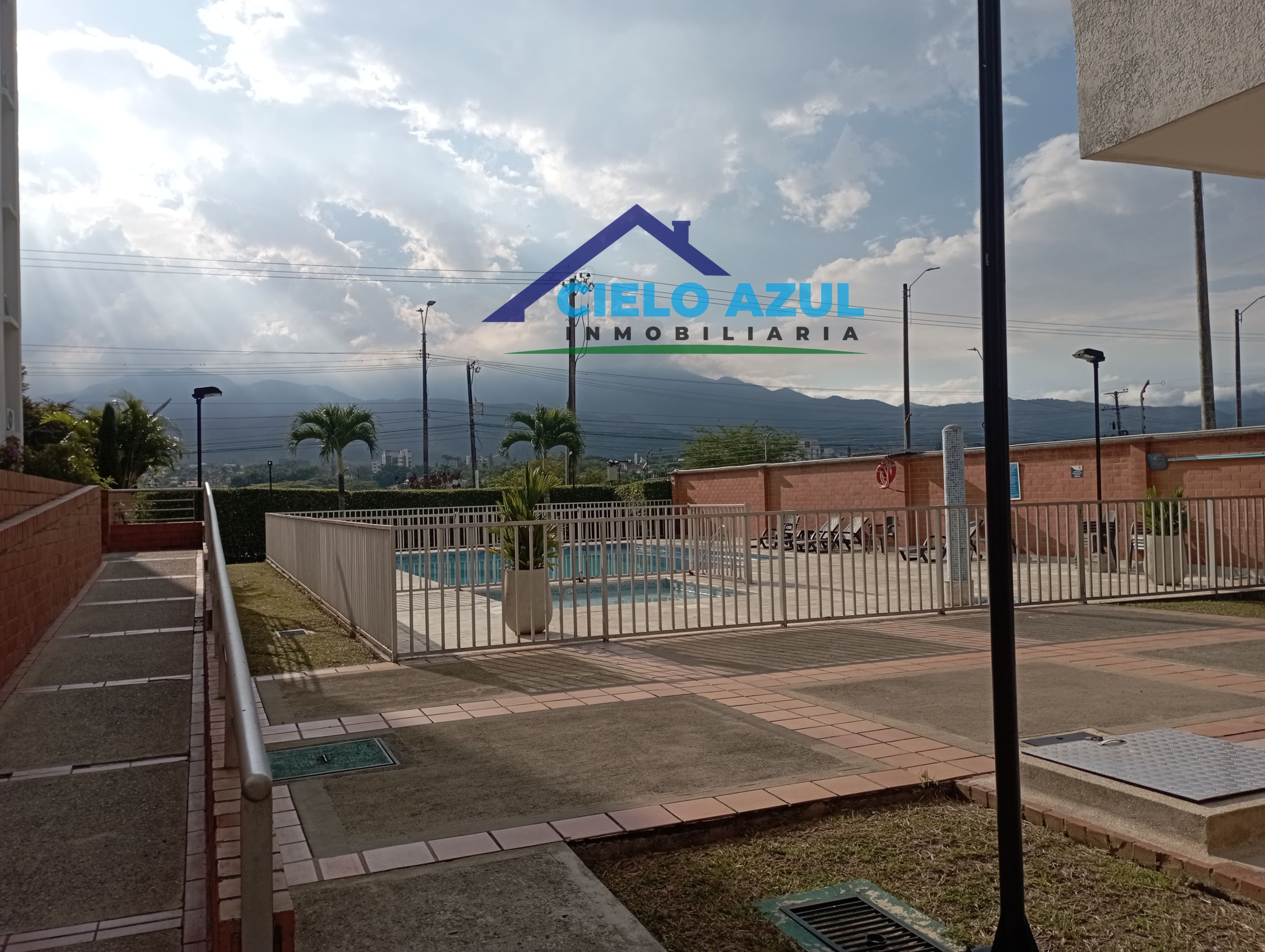 El conjunto tiene 3 torres de apartamentos, turco, gimnasio, zonas verdes, piscinas y portería las 24 horas.